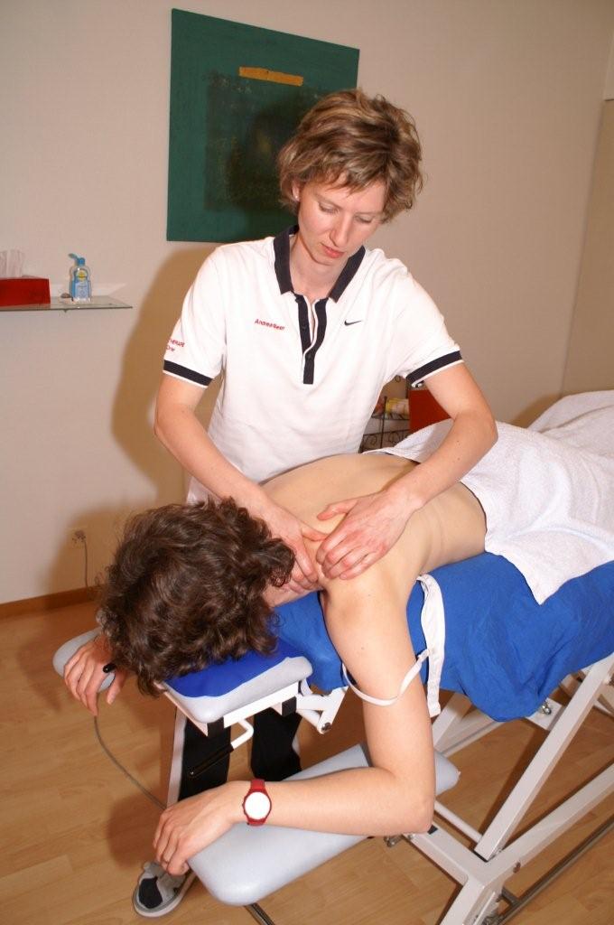 Die Massage dient zur mechanischen Beeinflussung von Haut, Bindegewebe und Muskulatur durch Dehnungs-, Zug- und Druckreiz. Sie ist eine Therapieform, die auf der Körperdecke (Haut) und der Muskulatur angewendet wird.